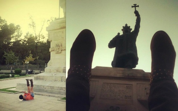 За две недели до Дня города на facebook стартовал конкурс «Ноги Кишинева», организованный сообществом i photo feet. В конкурсе мог участвовать каждый желающий (имеющий ноги, естественно) – нужно было всего лишь сфоткать свои ноги на фоне какого-то узнаваемого кишиневского объекта. Организаторами были заявлены один главный приз – 1000 леев за первое место – и поощрительные призы за второе и третье места. Победители, как водится на фэйсбучных конкурсах, определялись путем лайкового голосования.