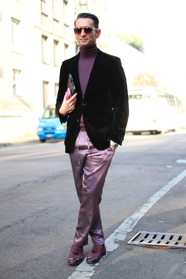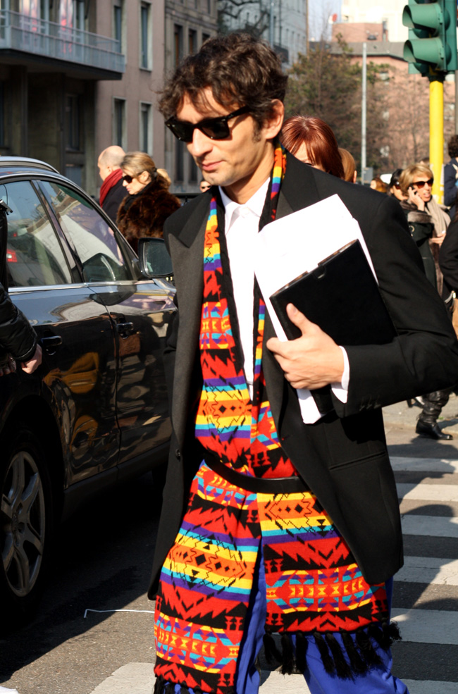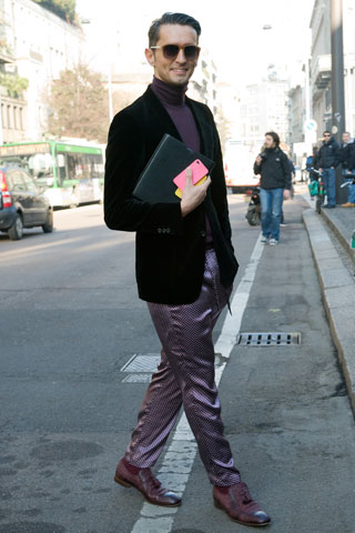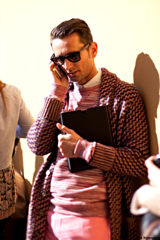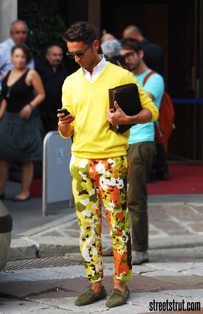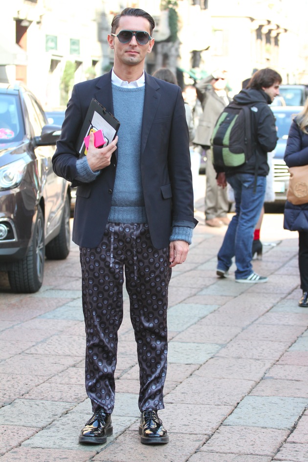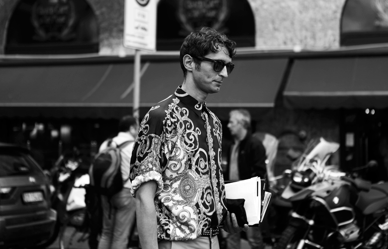 Simone Marchetti — один из редакторов моды в журнале La Rebulique (Италия). Визитная карточка образов Симона — яркие со всевозможными принтами брюки, винтажные рубашки, очки Ray Ban и клатчи Prada.
