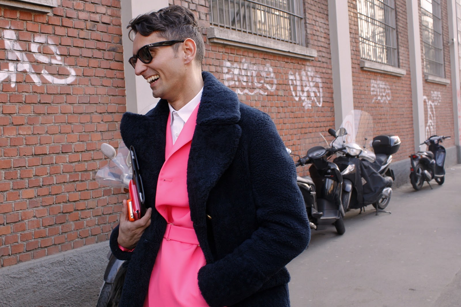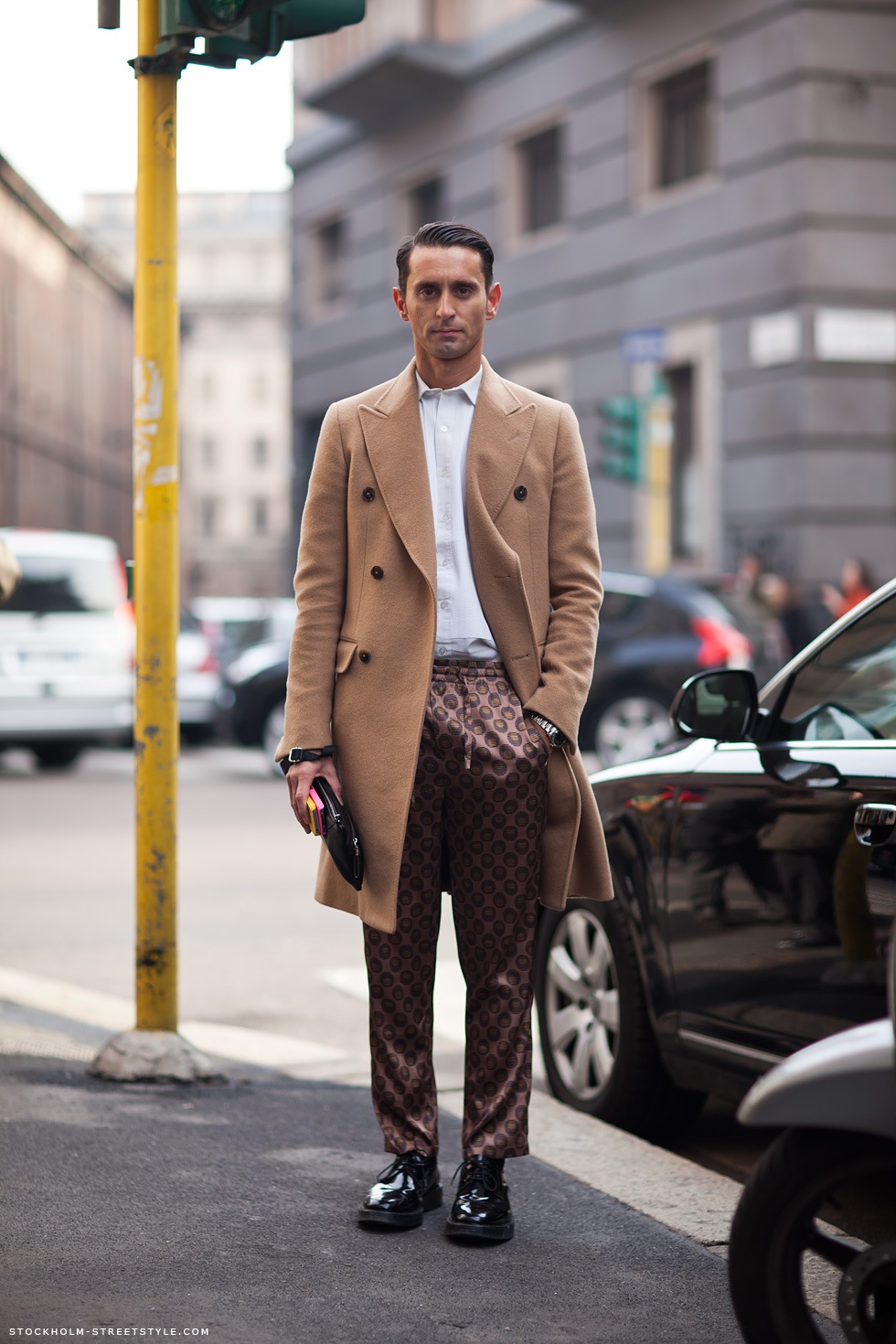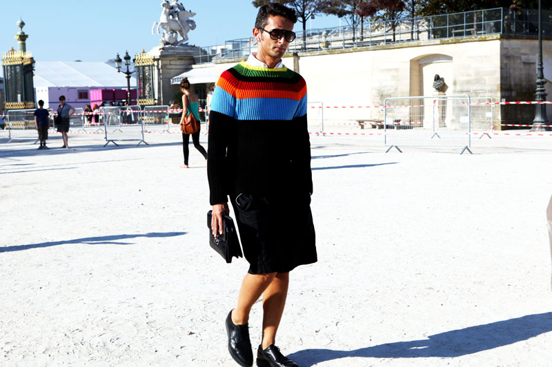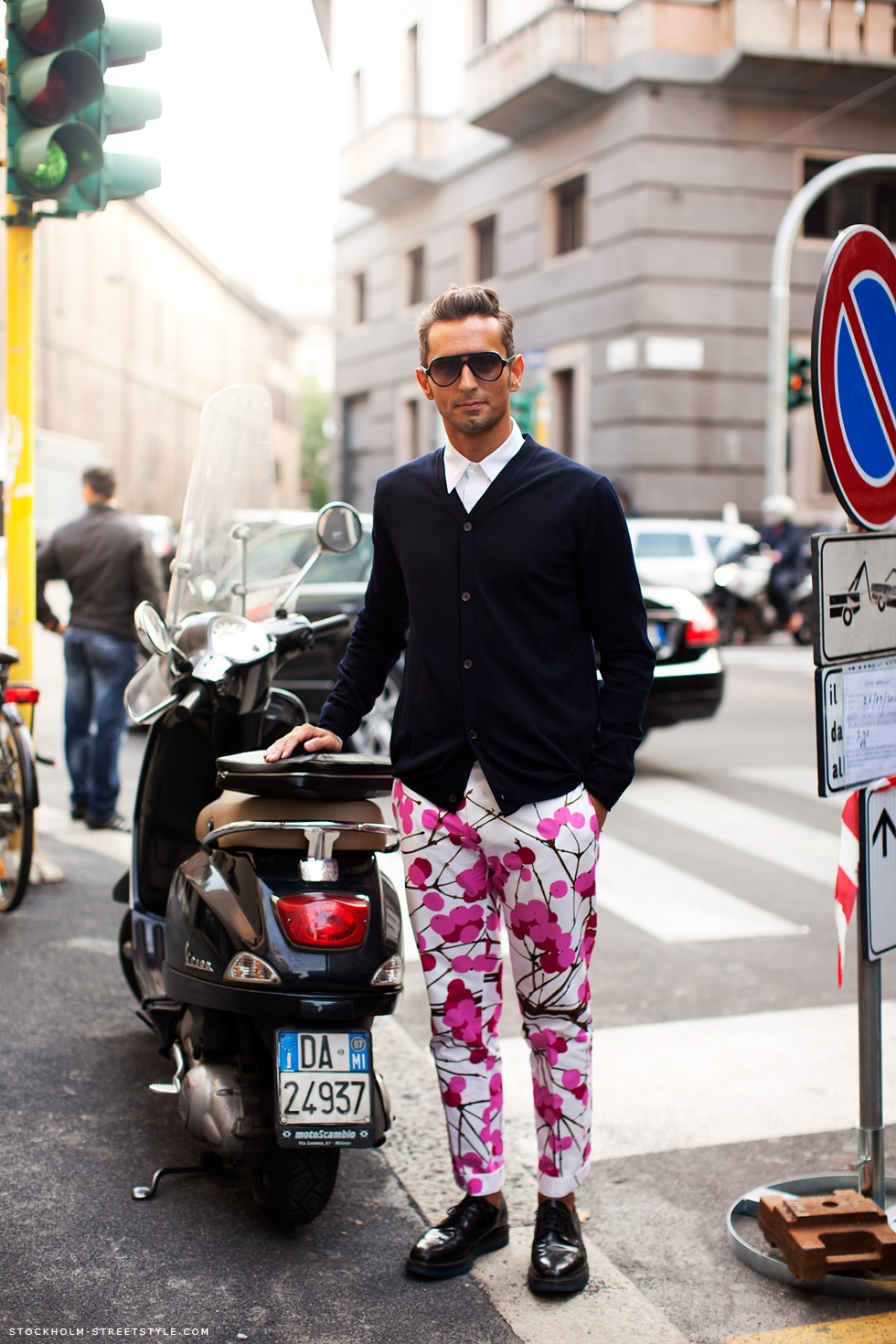 Simone Marchetti — один из редакторов моды в журнале La Rebulique (Италия). Визитная карточка образов Симона — яркие со всевозможными принтами брюки, винтажные рубашки, очки Ray Ban и клатчи Prada.