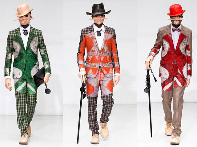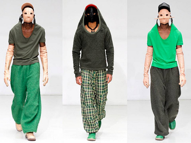 Эта коллекция была называна одной из самых интересных в сезоне. Маски, скрывающие лица моделей и оптический обман, который зрительно показывает нам два костюма, словно лежащих один на другом.