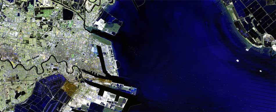 Изменения в районе Биньхай, Китай. Июль 1992 года — апрель 2012 года