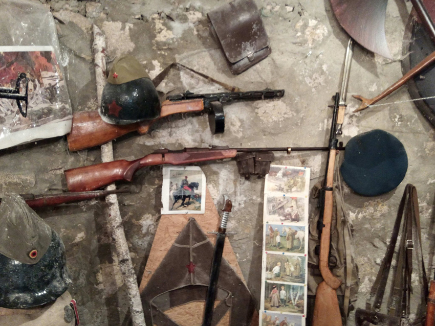 Музейная экспозиция размещается в двух небольших домиках. Всего здесь около 20 тысяч экспонатов — это разведмашина, бюсты героев советского прошлого, оружие, форма, предметы быта, начиная от времен Российской империи.