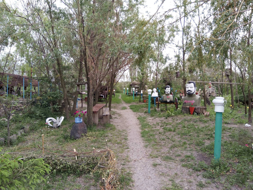 Ворота музея украшает герб СССР и телефонный аппарат, каких было много в советское время. Здесь есть бюст Ленина, который стоял у бывшего сельсовета, а рядом бюсты товарищей Фрунзэ (из здания сельсовета), Лазо, писателя Горького.