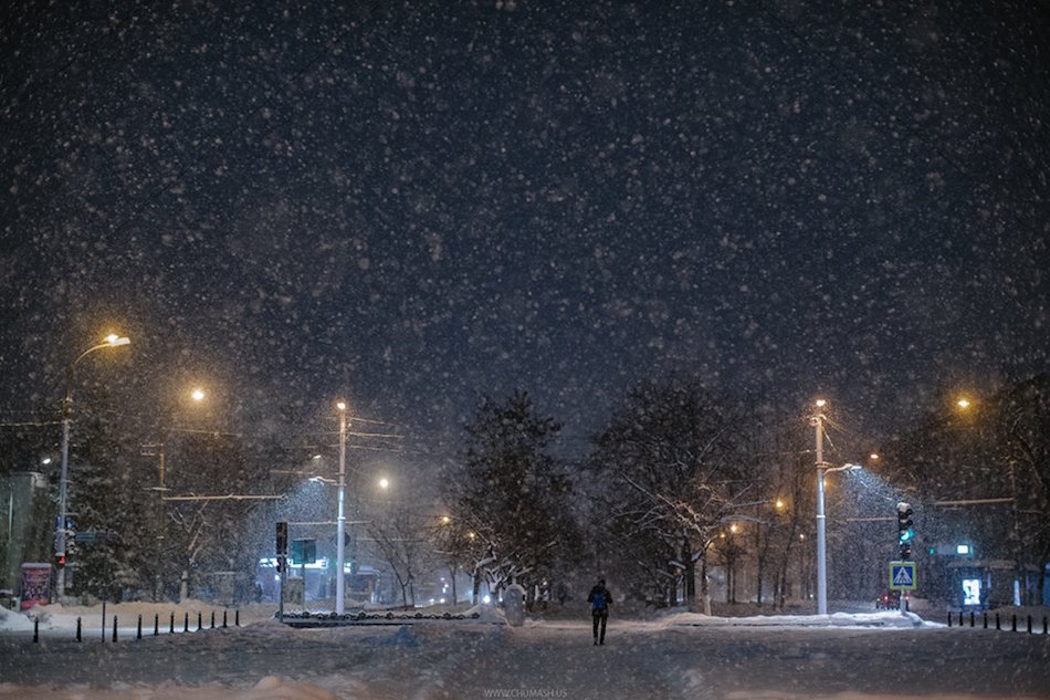 Сильнейший снегопад, который мы могли наблюдать в Кишинёве 23 марта, запечатлел фотограф Максим Чумаш, компанию ему составил Артур Хидден. Вместе они прошлись по самому центру столицы.
