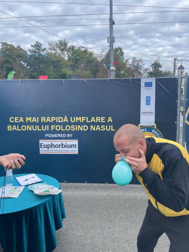 - Балан Вадим в номинации: самое быстрое надувание воздушного шара носом, с результатом 13,42 секунды;
