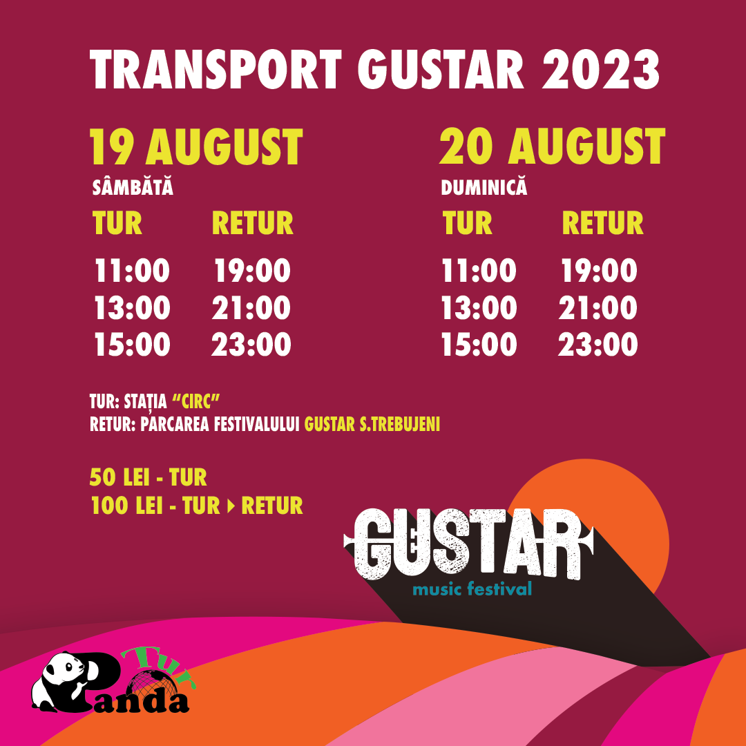 Для поездки также можно будет воспользоваться специальным комфортным транспортом от остановки "Цирк" в дни фестиваля, предоставленным Panda Tur. Стоимость проезда – 50 лей в одну сторону. Расписание отправления на изображении.
