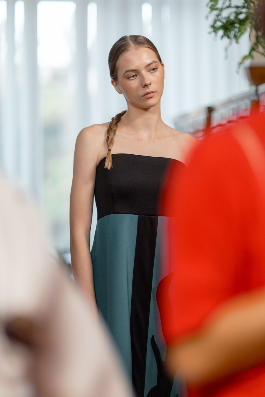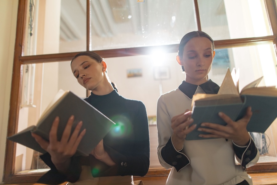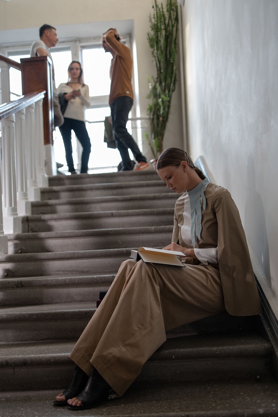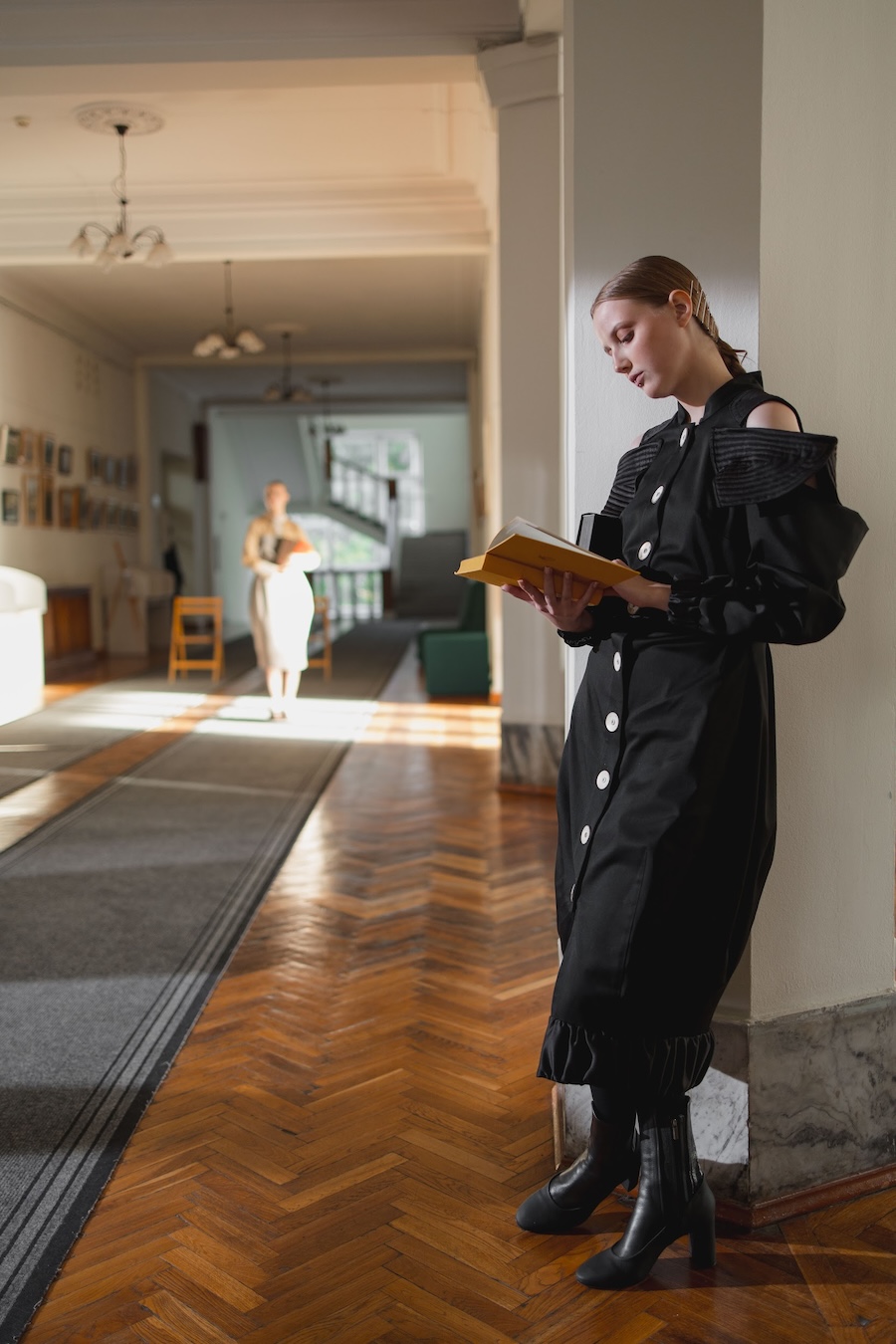 Креативный директор Наталья Митерева виртуозно отработала пространство: выстроила любопытные мизансцены, модели расположились и на лестничных проемах, и в огромном читальном зале, и в холле, а художественный свет создавал особую атмосферу. Модели были реально погружены в чтение книг, и потом, уже по завершению события, обменивались между собой информацией о прочитанном. В залах звучали стихи Андрея Вознесенского на английском языке.