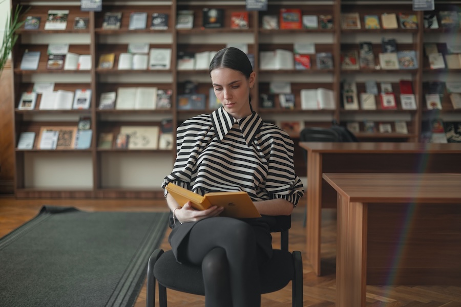 Хочешь быть модным? Ходи в библиотеку! — так можно трактовать посыл дизайнера.