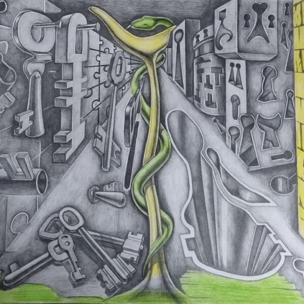 Василий Чурарь — молдавский художник, который пришел в искусство не из академий и богемы. По специальности он полицейский, юрист, а еще теолог. Его графика напоминает работы голландца Маурица Эшера, изображавшего трехмерные фигуры с оптическими иллюзиями. В картинах Чураря тоже есть игра с пространством и ощущение глубокой философии жизни, смерти, поиска смысла и блужданий человека.