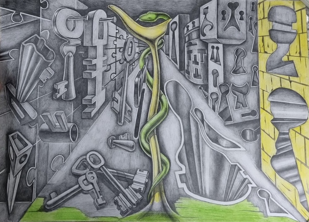 Василий Чурарь — молдавский художник, который пришел в искусство не из академий и богемы. По специальности он полицейский, юрист, а еще теолог. Его графика напоминает работы голландца Маурица Эшера, изображавшего трехмерные фигуры с оптическими иллюзиями. В картинах Чураря тоже есть игра с пространством и ощущение глубокой философии жизни, смерти, поиска смысла и блужданий человека.