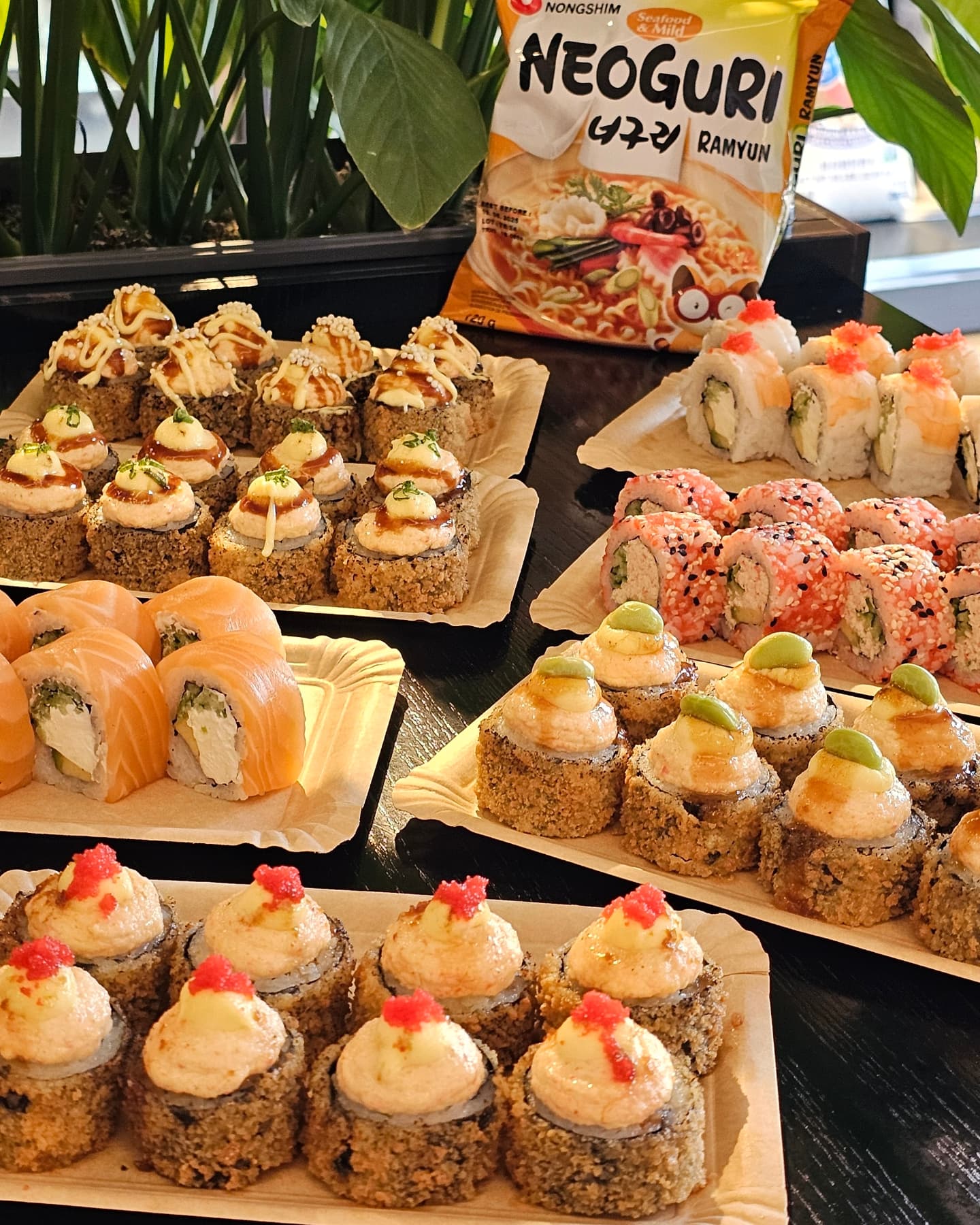 Интерьер в азиатской эстетике, ярких цветах и с неоновыми вывесками. Широкий выбор блюд: суши, суши‑бургеры, роллы, бао-бургеры, лапша, супы том‑ям и мисо, закуски, салаты, тар-тар и сашими, боулы и десерты.