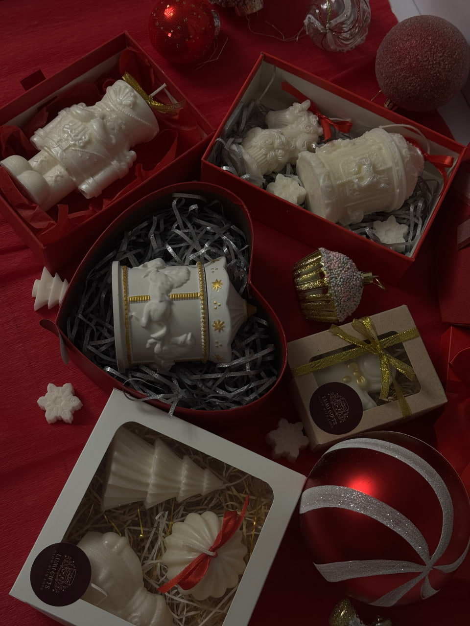 Праздничный декор, гирлянды, рождественские композиции, свечи, подсвечники, картины, гномы и, конечно же, лошадки.