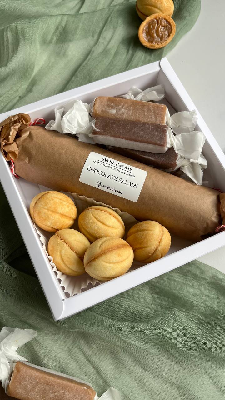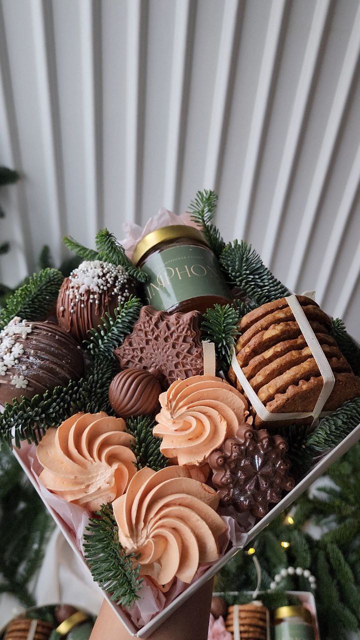 Сладости — пряники, домашняя выпечка, авторские десерты, ириски, тортики, шоколадная колбаса, настойки и те самые орешки.