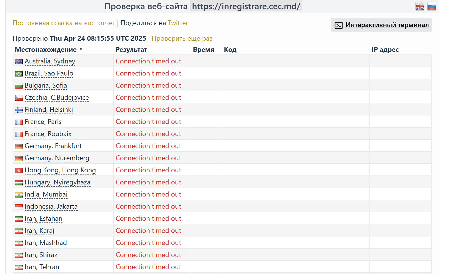 К сообщениям прикреплены скриншоты, демонстрирующие ошибки подключения к сайтам из разных стран. Однако все скриншоты идентичны и взяты с одного и того же ресурса для проверки доступности сайтов.