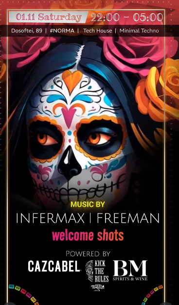 1 ноября, ночь с субботы на воскресенье, День Мёртвых, а #NORMA живет живее всех живых под ритмы Deep Tech, Minimal Techno и Break Beat.