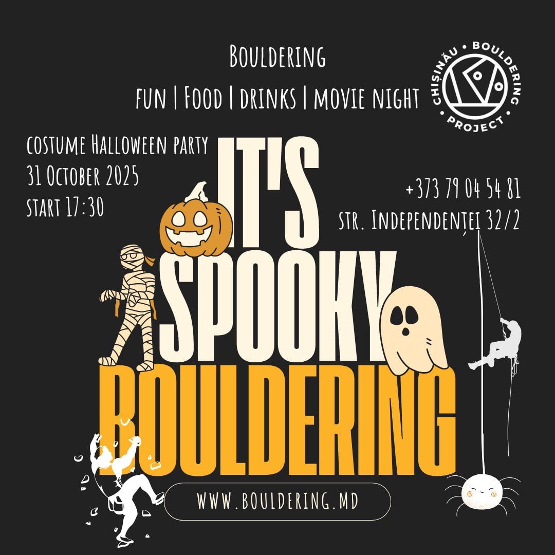 Если вы давно хотели, но боялись попробовать скалолазание, Halloween в Chisinau Bouldering Project – верное место, чтобы побороть все свои страхи и попробовать что-то новое в дружеской обстановке.