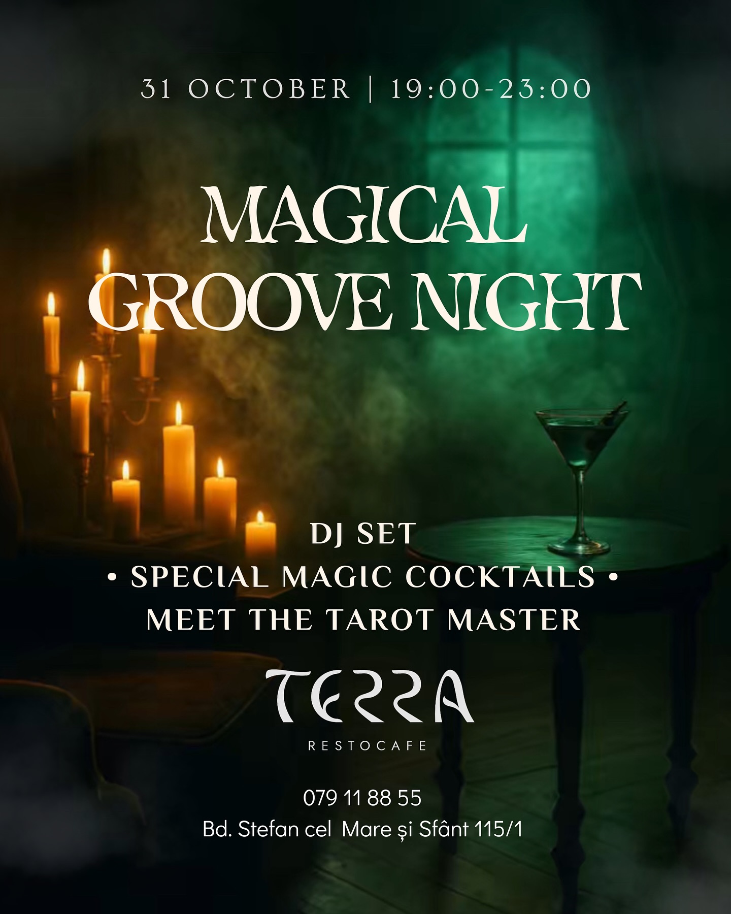 Ресторан Terra превратится в место тайн, чарующей атмосферы и волшебных вибраций. Мягкий свет свечей и тематический декор перенесут гостей в загадочный мир, полный очарования и сюрпризов.