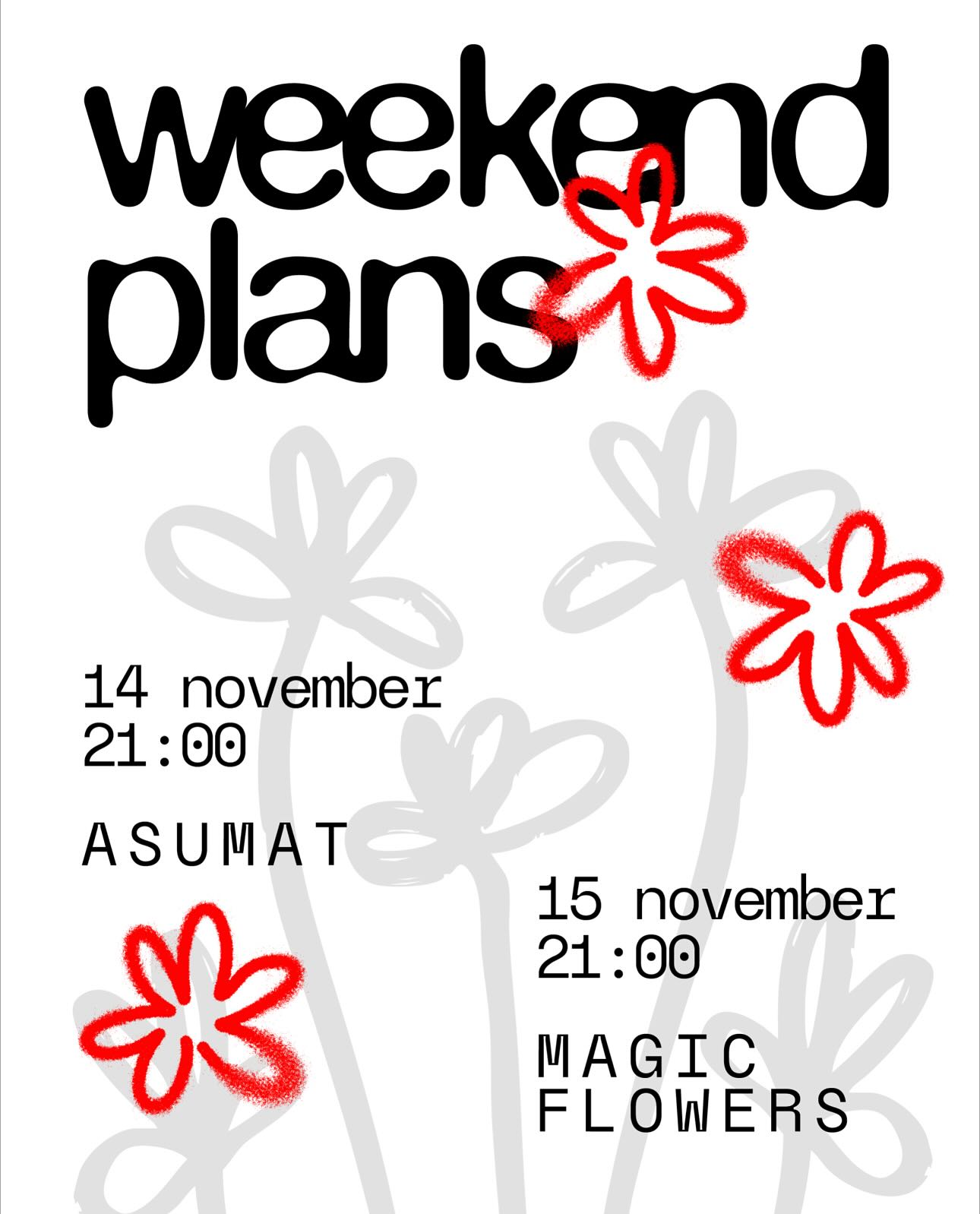 В пятницу за музыку отвечает Asumat, а в субботу – Magic Flowers.