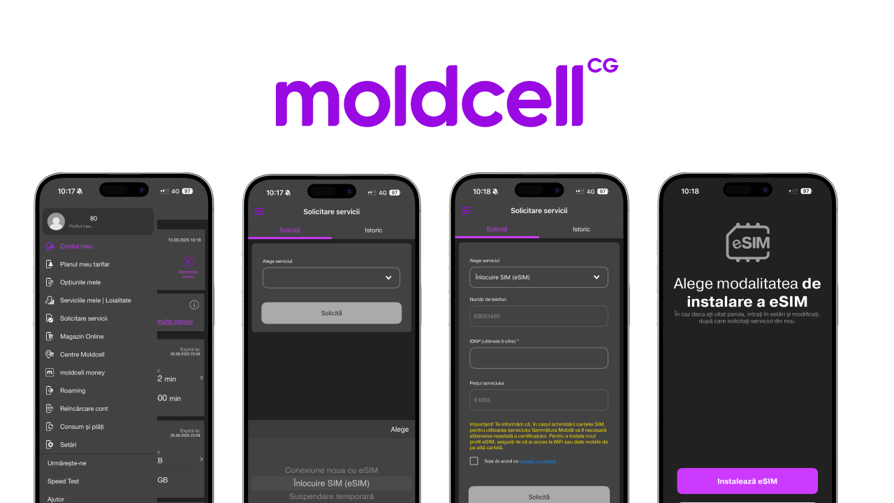 У Moldtelecom процесс перехода на eSIM осуществляется 100% онлайн.