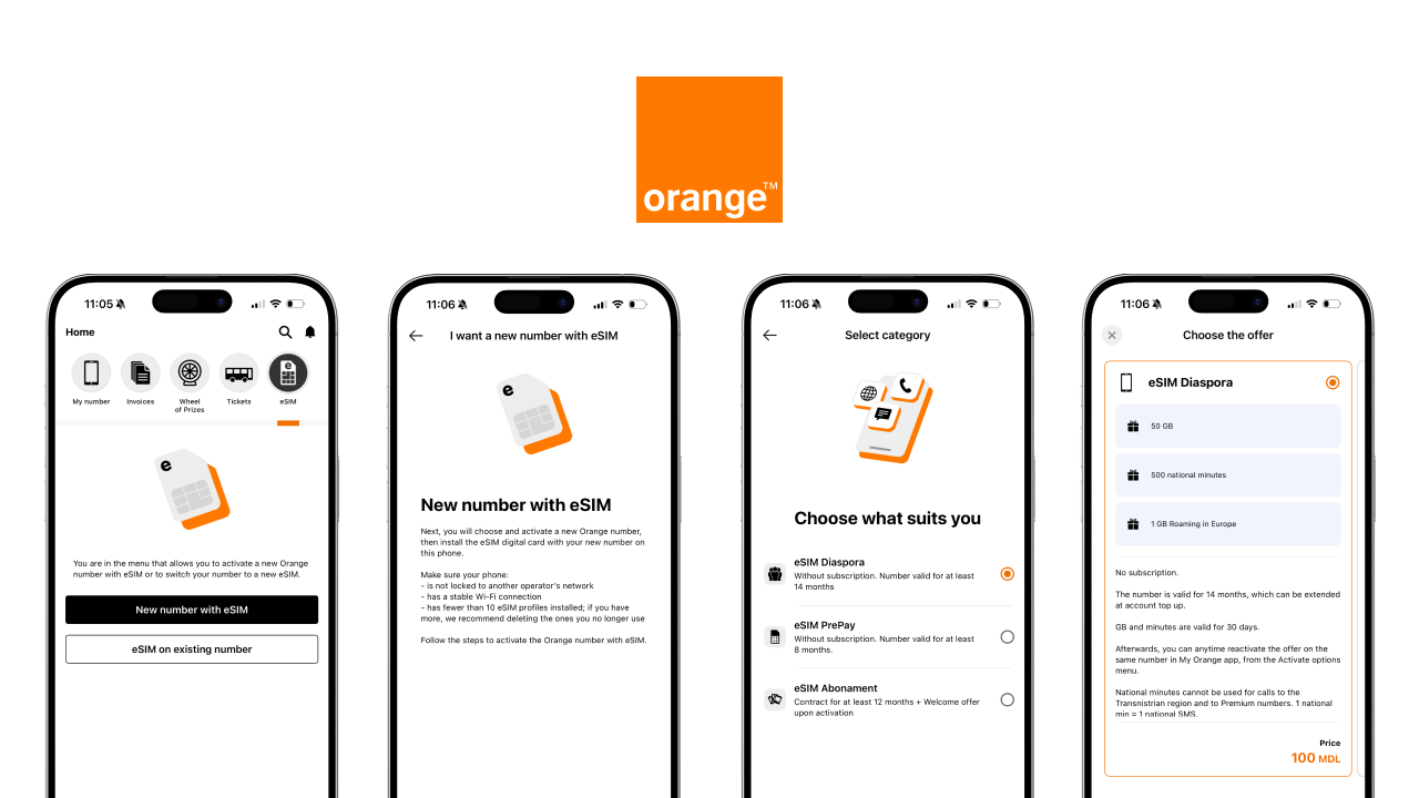 Переход на eSIM осуществляется через приложение My Orange Moldova — быстро и просто.