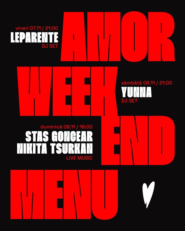 Три дня тусовок с эклерами в AmorAmar. В пятницу за пультом – DJ Leparante, в субботу – DJ Yunna, в воскресенье – за живую музыку отвечают Никита Цуркан и Стас Гончар.