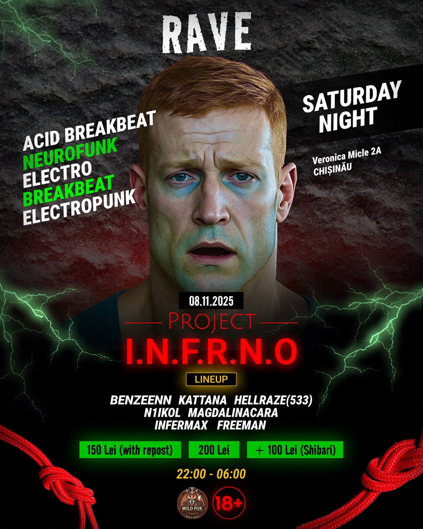 Электрорейв и шибари в Wild Fox. В лайнапе 7 диджеев: BENZEENN, Kattana, Hellraze(533), N1IKOL, magdalinacara, infermax, Freeman