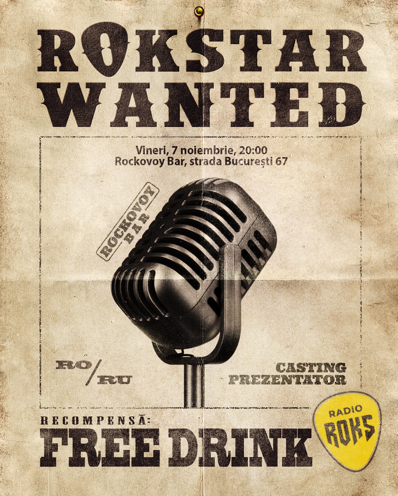В Роковом баре пройдет кастинг ROKSTAR WANTED от Radio ROKS. Тебе дадут микрофон, тему для импровизации и одну минуту, чтобы покорить всех вокруг своей харизмой и юмором.