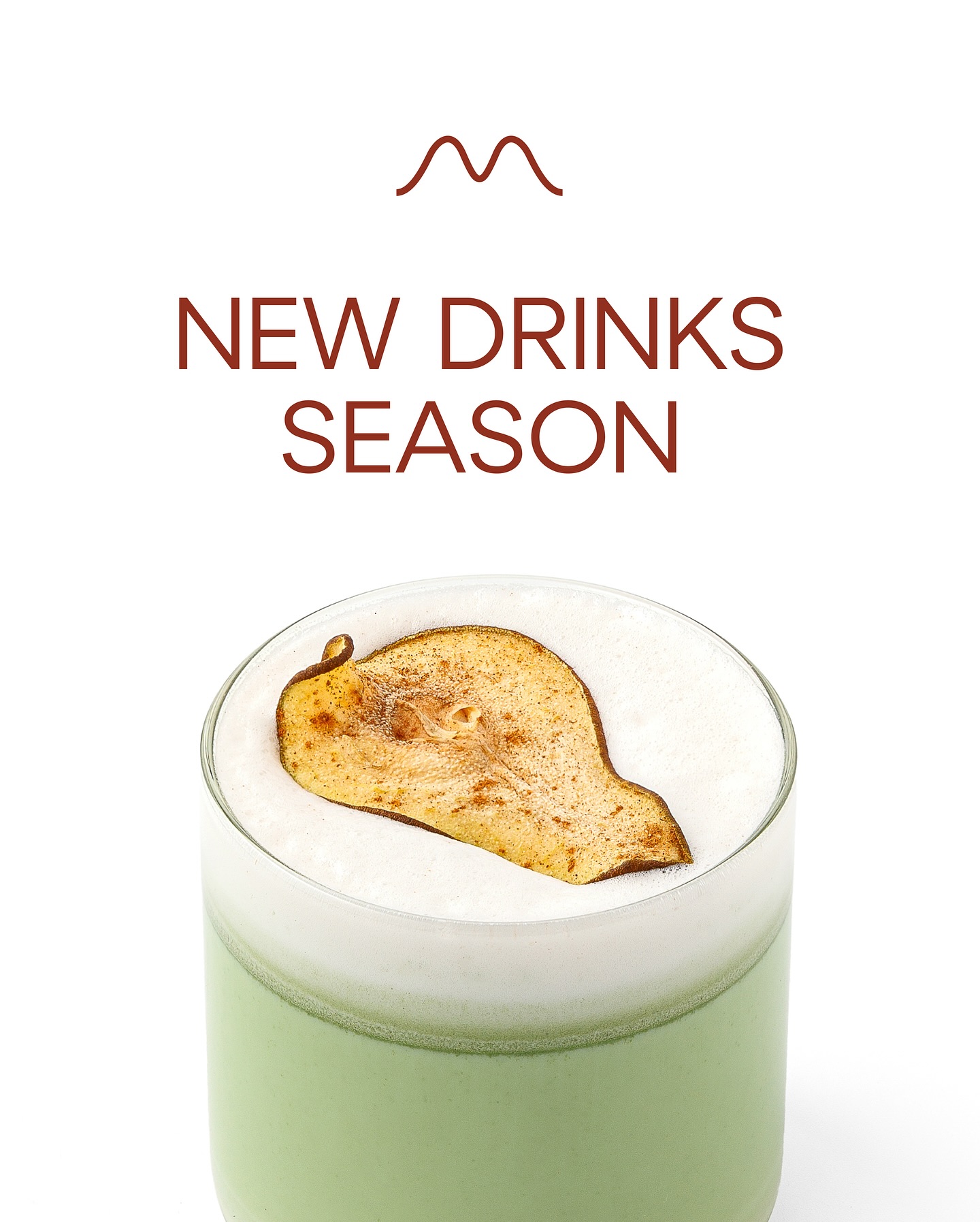 В Miro представлены матча с грушей и масалой, клюквенно-ванильный матча, ходзича латте с айвой, горячий вишневый шоколад, латте с каталонским кремом, апельсиново-карамельный латте, чай яблочный пирог, абрикосовый ройбуш чай, молочный вишневый чай.