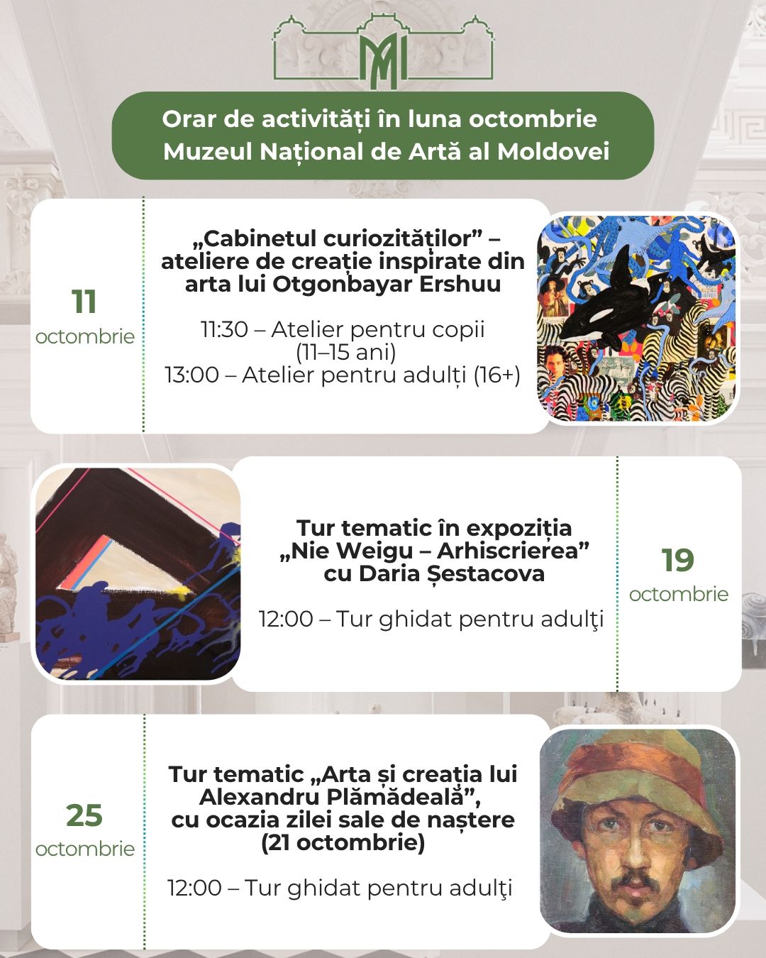 Национальный художественный музей Молдовы подготовил на октябрь серию культурных мероприятий, призванных приблизить посетителей к искусству и создать пространство для диалога и вдохновения.