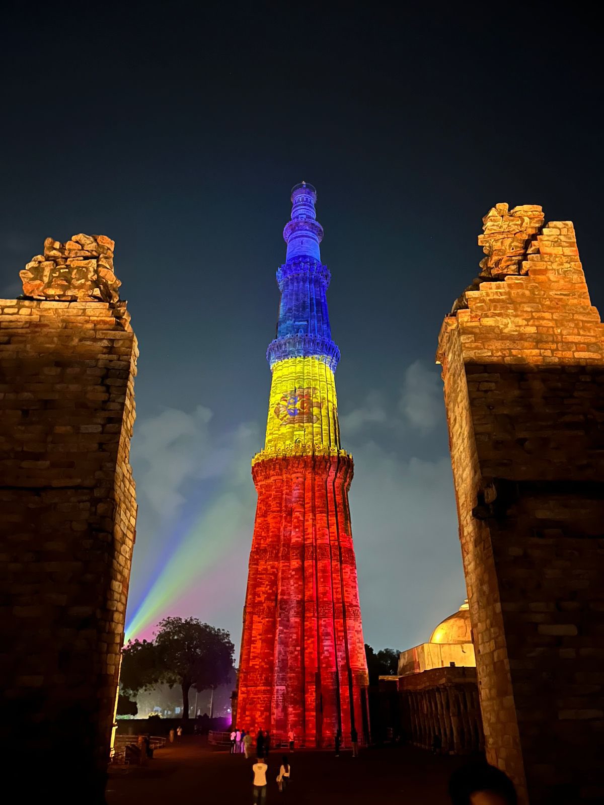 Знаменитую башню Кутб-Минар в Нью-Дели подсветили цветами молдавского флага на День независимости Молдовы