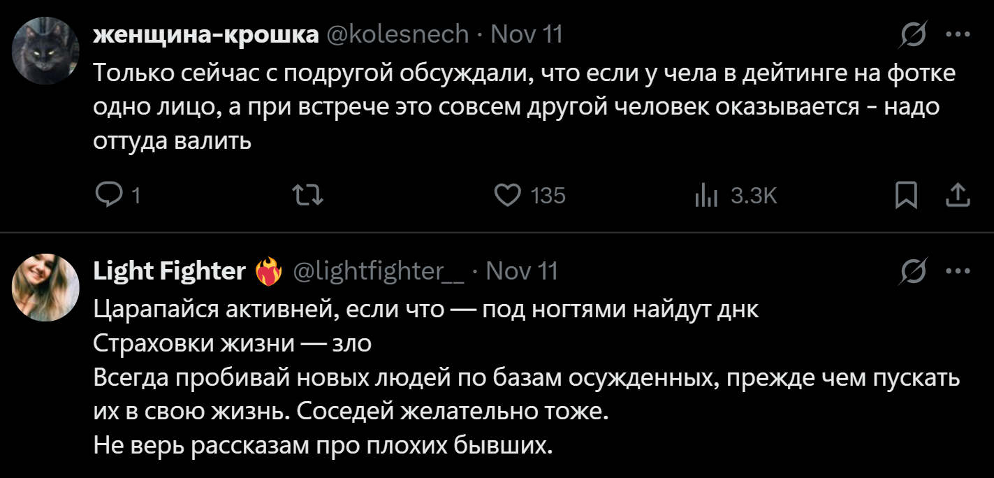В X (бывшем твиттере) пользовательница с ником @Bjorktobe запустила тред «Какие лайфхаки вы для себя вынесли из трукрайм подкастов?». Рассказываем, что полезного написали в комментариях.