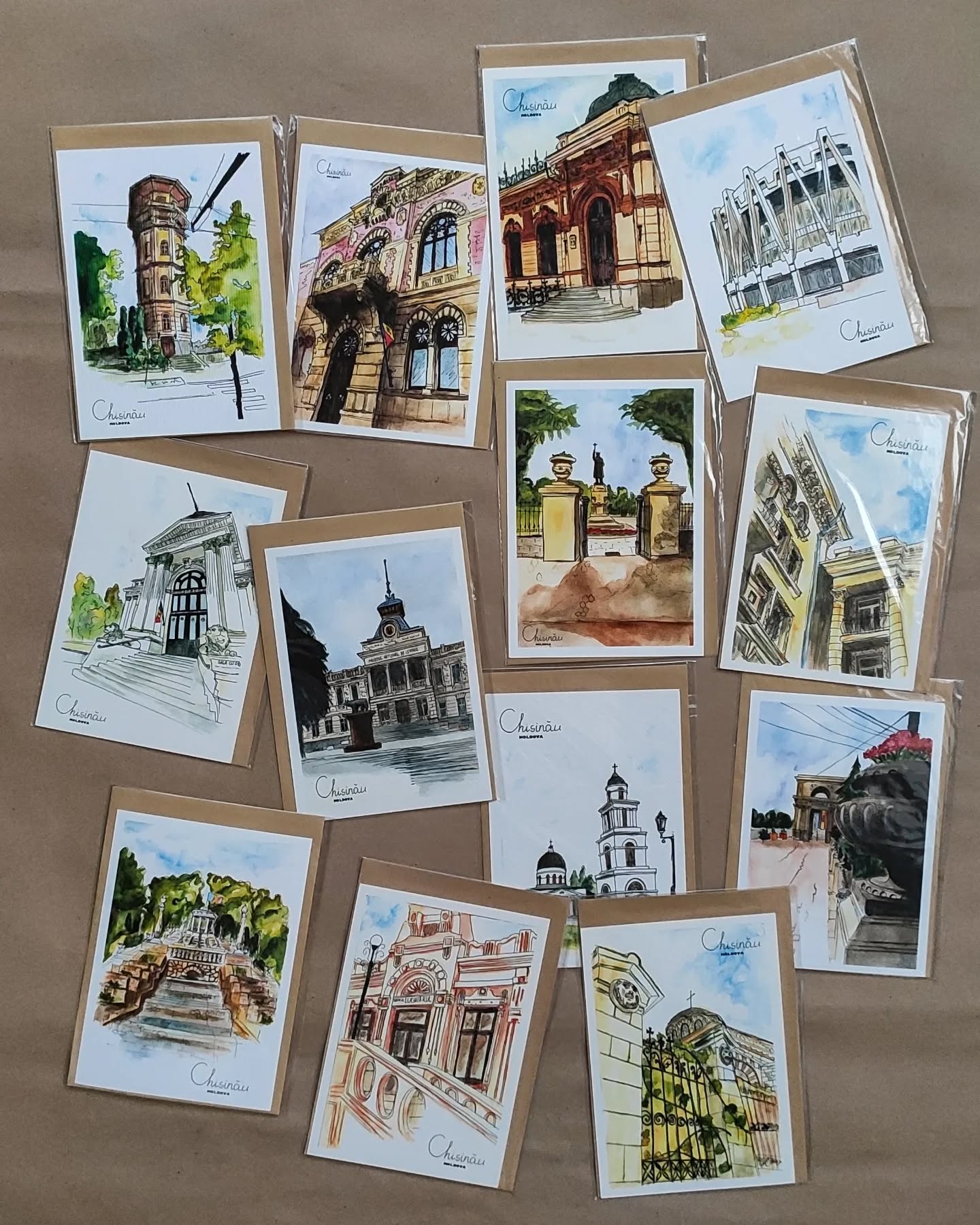 Ксения больше 15 лет занимается рисованием и шитьем, а со временем пришла к тому, что хочет создавать уникальные вещицы. У нее можно приобрести авторские открытки – акварельные или с вырубкой с красивыми видами Кишинева. Такие не удастся найти в обычный сувенирных магазинах.