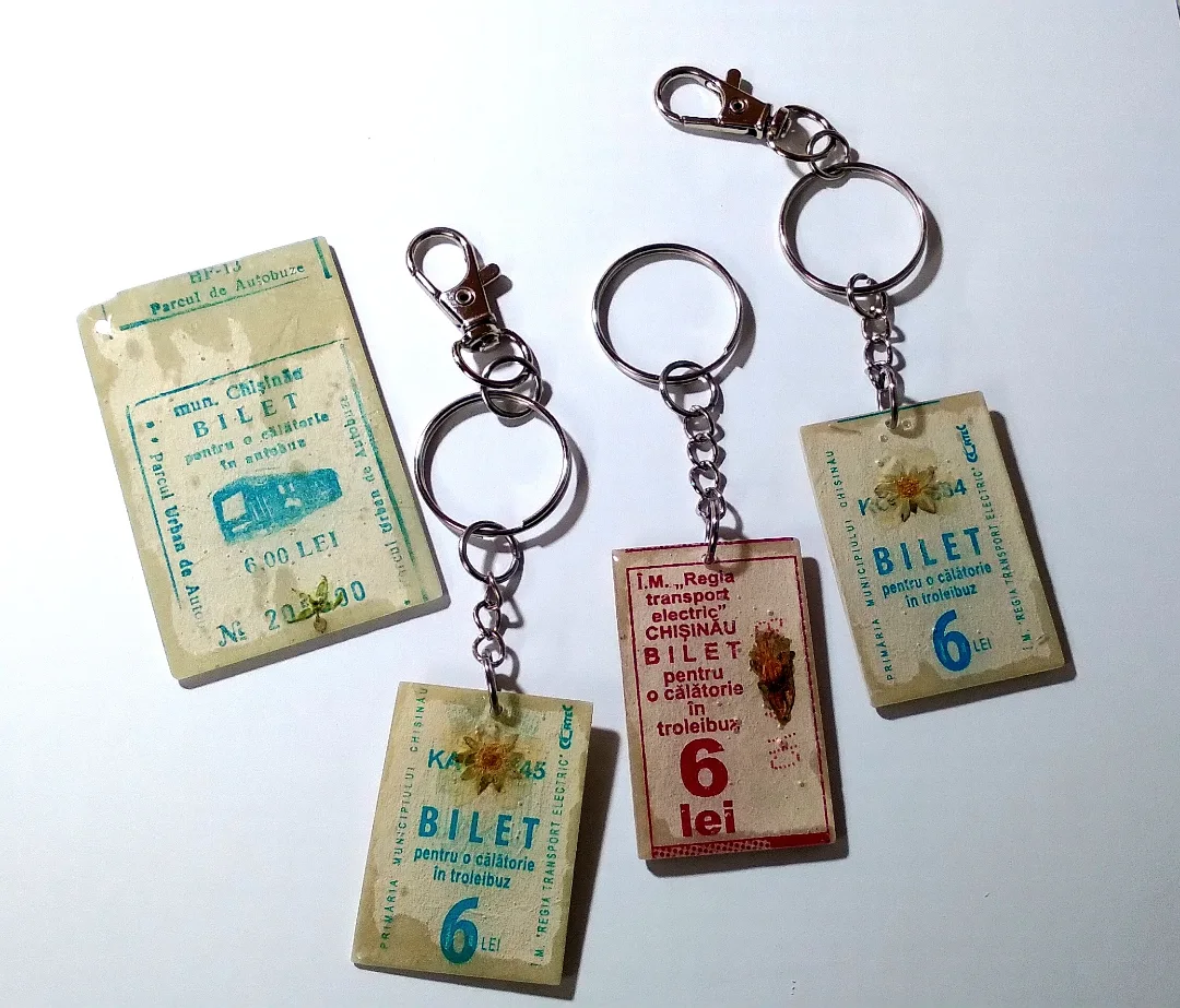 Геннадий Левит делает хенд-мэйд украшения. Среди его работ можно найти магнитики и брелоки с билетами общественного транспорта и в молдавской тематике. Все из эпоксидной смолы.