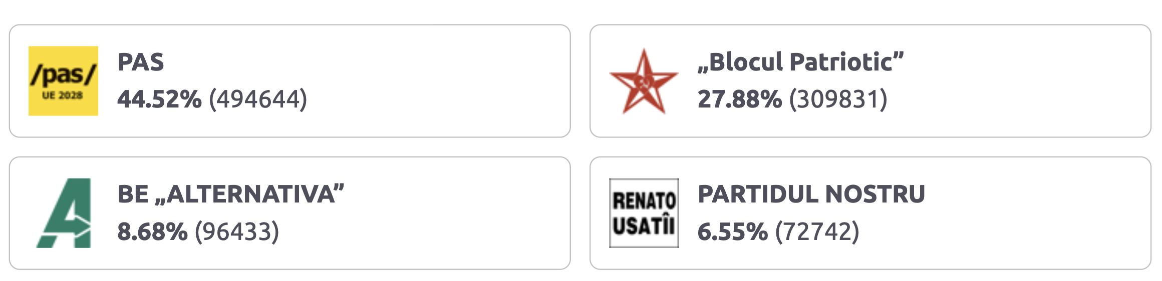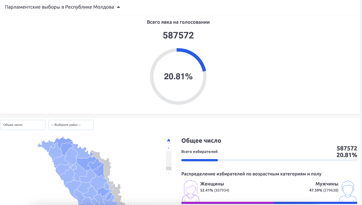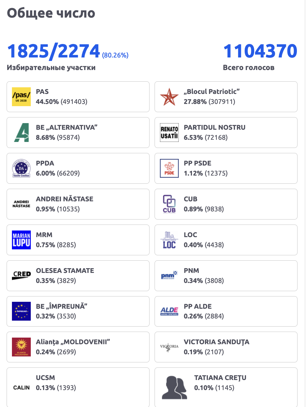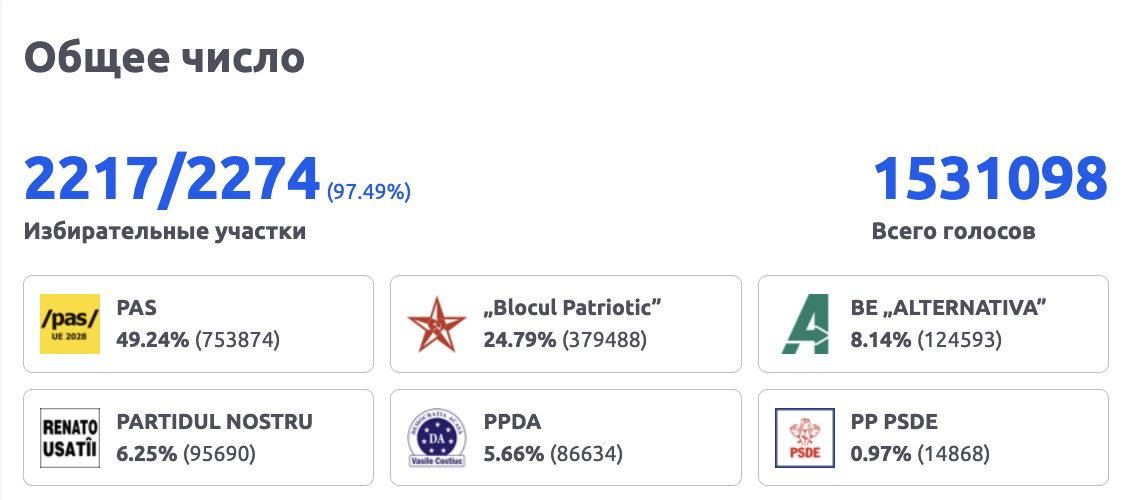 Напомним, что закон в Молдове устанавливает порог для прохода в парламент: избирательные блоки должны набрать 7% голосов, партии - 5%, независимые кандидаты - 2%.
