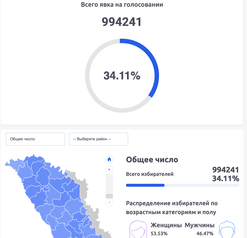 По данным ЦИК, явка составила 52,1 процента. Свои голоса отдали более 1,6 миллиона человек, в том числе 264 000 на участках за рубежом.