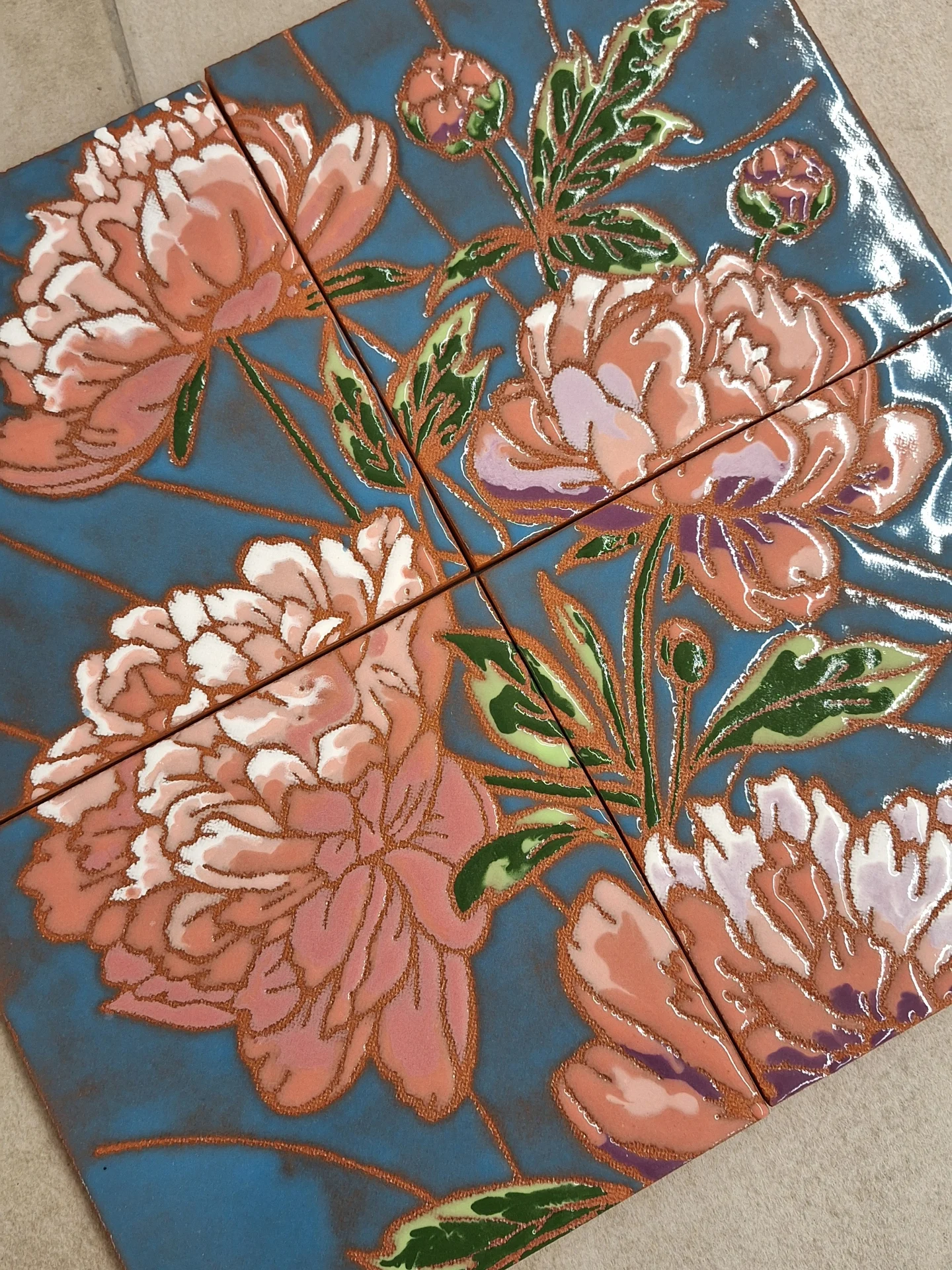 Преимущество этой техники: не нужно ждать днями или неделями, пока высохнет глина. Плитки можно обжигать сразу после нанесения глазури, и готовые работы будут готовы уже через 1–2 дня.