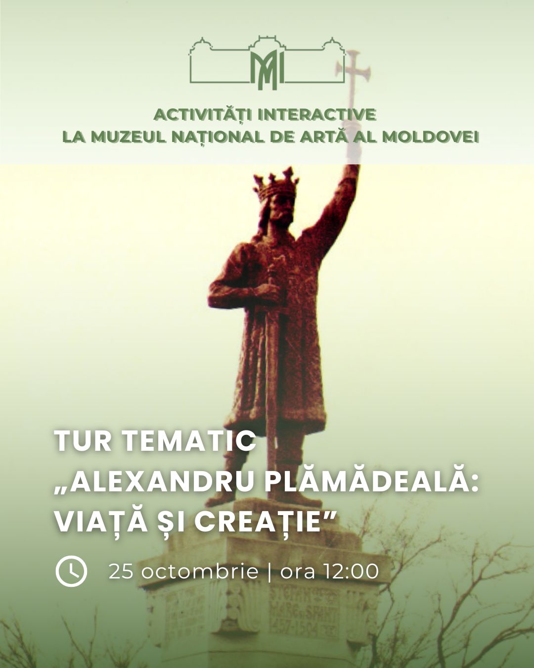 В музее пройдет тематическая экскурсия, посвящённая Александру Плэмэдялэ, приуроченная ко дню его рождения (21 октября). Посетители смогут узнать о жизни и творчестве скульптора через подборку работ из постоянной экспозиции.