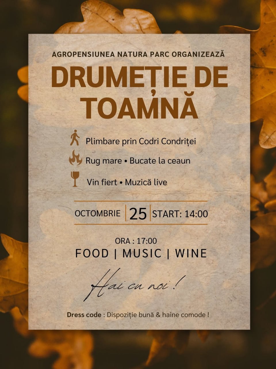 Natura Parc приглашает на осенний пеший поход от их агроусадьбы. Программа начнется в 14:00, а закончится в 17:00 в Natura Parc, где вас будут ждать: