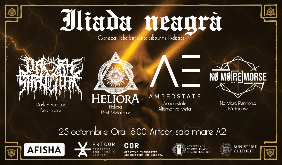 Artcor превратится в эпицентр метала. Хедлайнеры вечера – DARK STRUCTURE – возвращаются с мощным шоу, а Heliora представит долгожданный альбом Iliada Neagră. Атмосферу дополнят Amberstate и Nomoremorse, обещая вечер, где будут царить энергия, тяжёлые риффы и жёсткие брейкдауны.