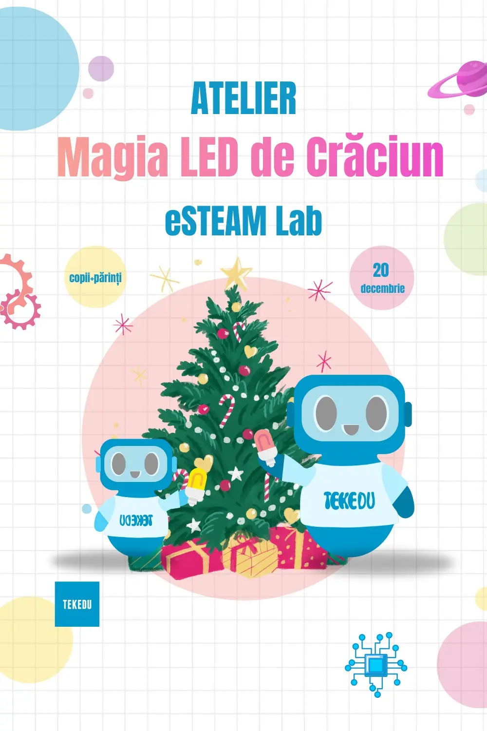Праздничный мастер-класс «Рождественская LED-магия» — практическое и интерактивное занятие, предназначенное для маленьких исследователей в возрасте от 7 до 10 лет. Дети и родители станут маленькими инженерами света, работая бок о бок, чтобы построить электрическую LED-елочку, которая действительно оживает.