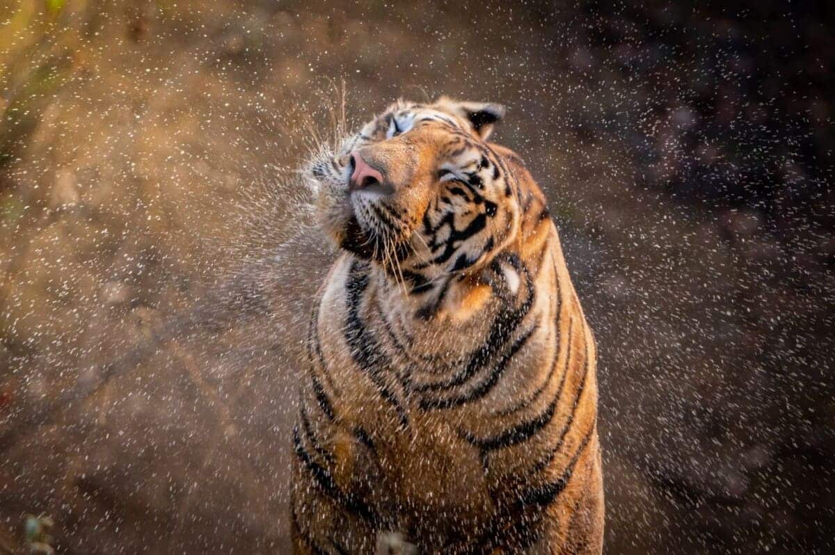 Высокая оценка жюри: в разгар лета в Национальном парке Тадоба, Индия, бенгальский тигр стряхивает с себя воду / © Balamurali Ellamurugan