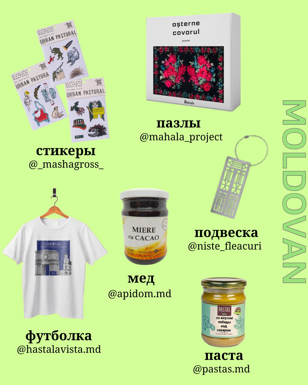 Подарки с молдавским вайбом близким или друзьям заграницу. Пазлы, футболки, стикеры и даже мед с пастой.