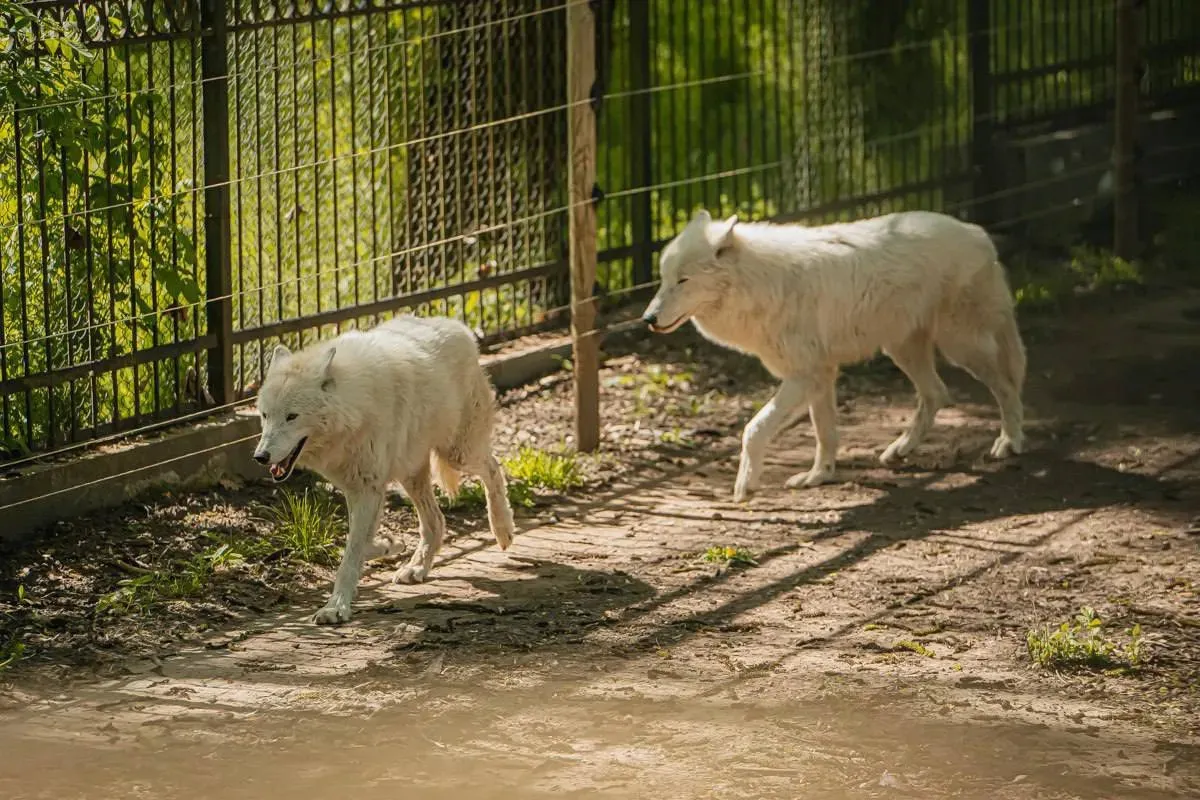 Белые волки живут в самом прохладном вольере. Они роют ямки в земле, прячутся в тени. Мы обрызгиваем их водой, чтобы им стало легче, — рассказала гид зоопарка Кристина Флокос.