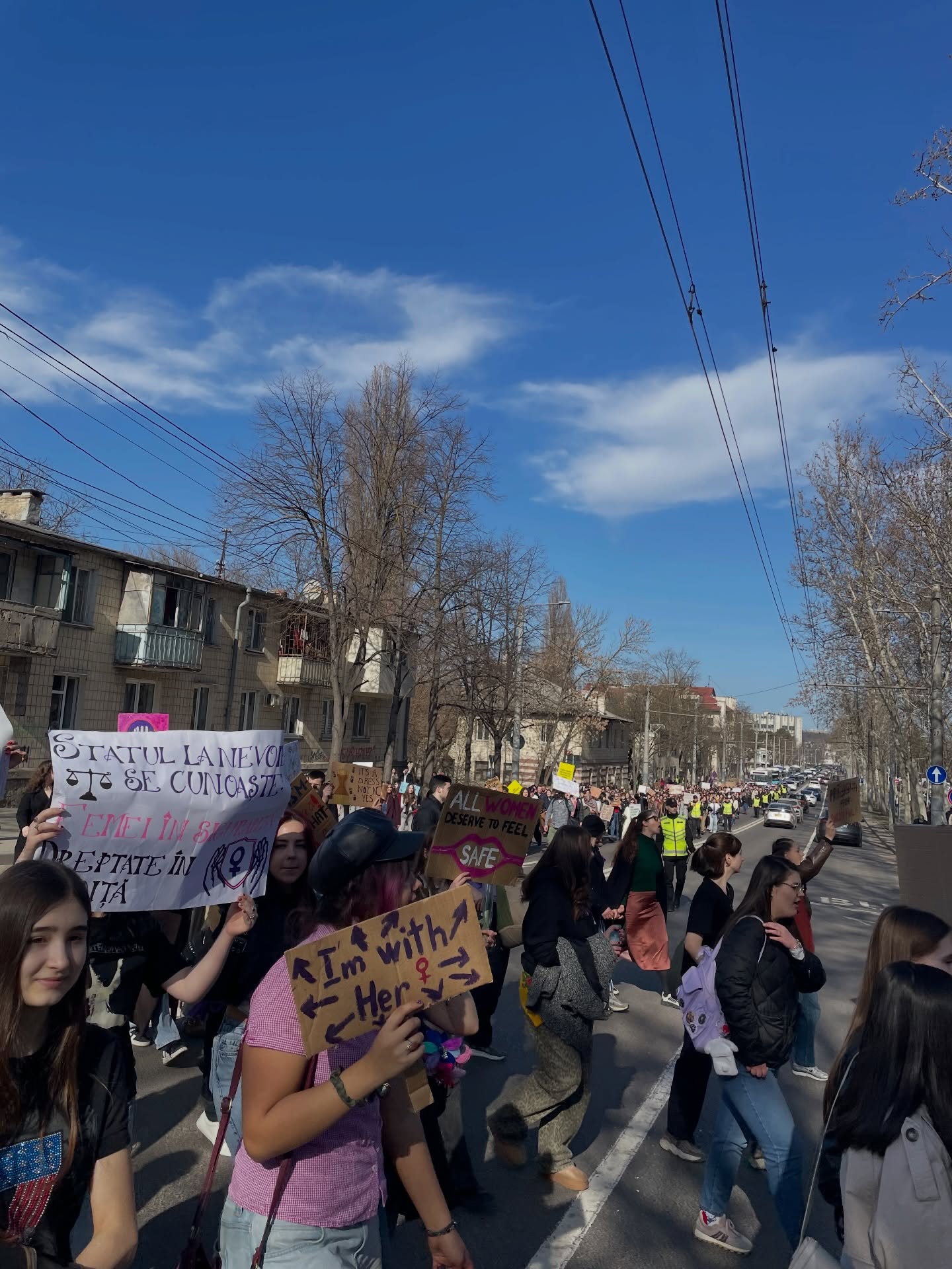 В Международный женский день в Кишиневе прошел Феминистский марш под лозунгом «Государство познается в трудную минуту: женщины в безопасности. Правосудие — в суде!».
