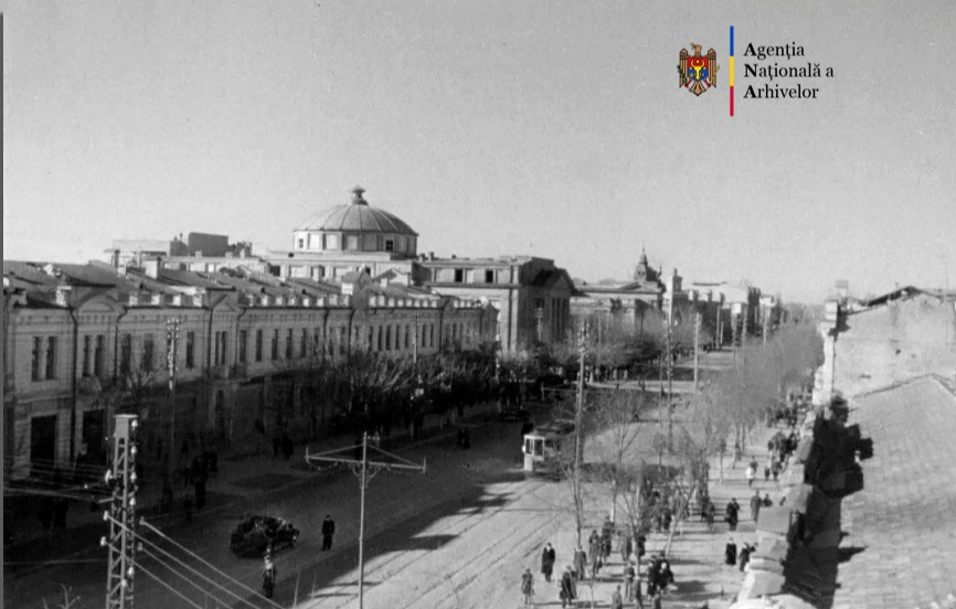 На видео, опубликованном Национальным архивным агентством, запечатлен Кишинев 1952 года. Это перекресток бульвара Ленина (сегодня бульвар Штефана чел Маре) и улицы Пушкина.
