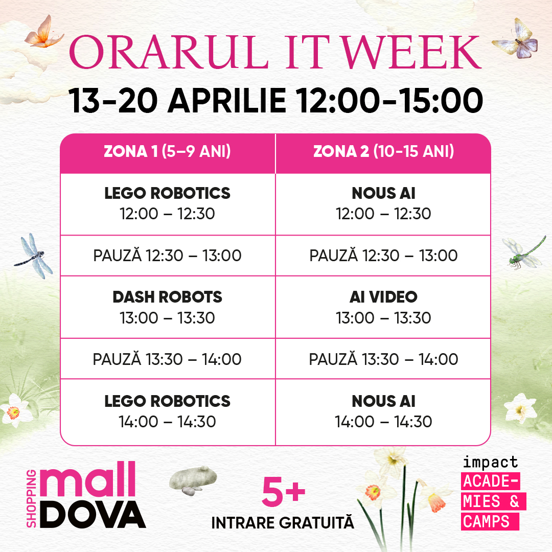 С 13 по 20 апреля в Shopping MallDova проходит серия бесплатных IT-мероприятий для детей и подростков от 5 до 15 лет, организованные Impact Academies & Camps.