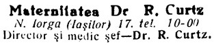 В документах, справочниках и рекламных объявлениях того времени роддом фигурирует как Maternitatea Dr. Curtz, Sanatoriul Dr. Kurtz или санаторий родильный приют д-ра Курца.