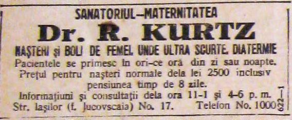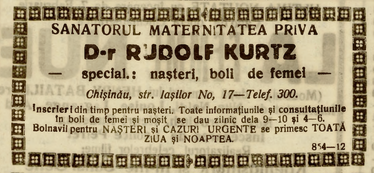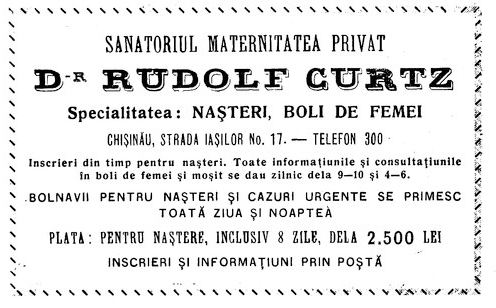 В Кишинёве в 1920–30-е годы работал солидный частный родильный приют-санаторий доктора Рудольфа Курца.