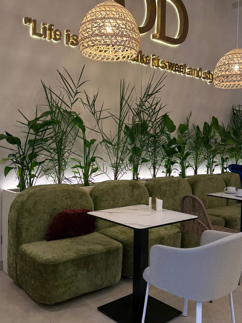 Сейчас в ассортименте — торты, муссовые пирожные, тарты, круассаны, чизкейки, макаронс и другие десерты. Под кафе ODÉLLE находится несколько цехов, включая кондитерскую и выпечку, так что каждый день они сами готовят свежие десерты для своих пространств и на заказ.