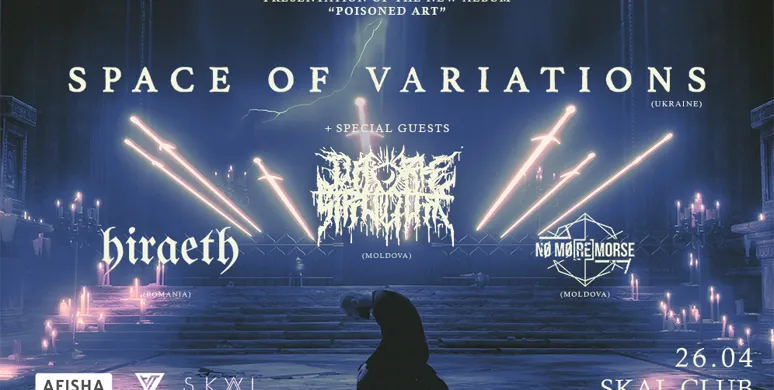 Украинская группа Space of Variations возвращается с взрывным лайв-шоу, которое с первых секунд погружает в атмосферу тяжелой музыки и бескомпромиссного драйва. Вместе с ними на сцену выйдут специальные гости: Dark Structure, Hiraeth и Nomoremorse.